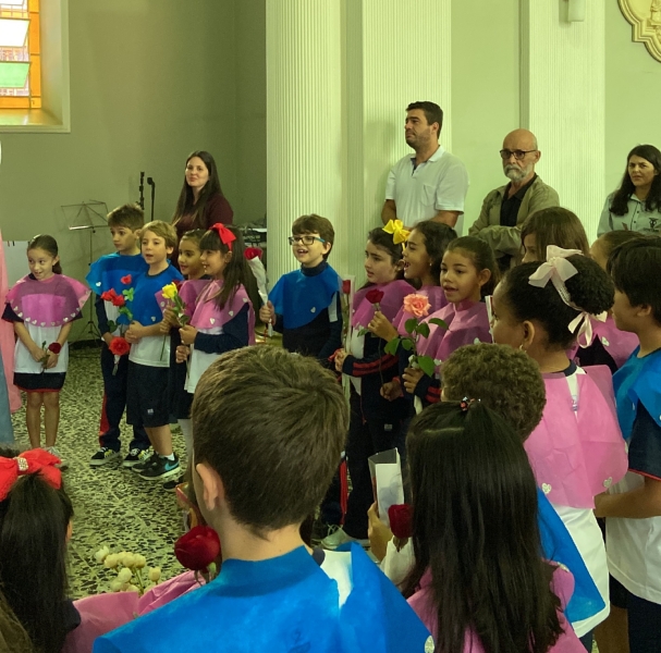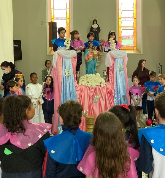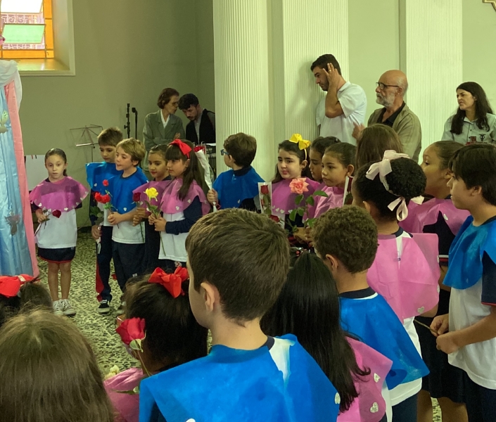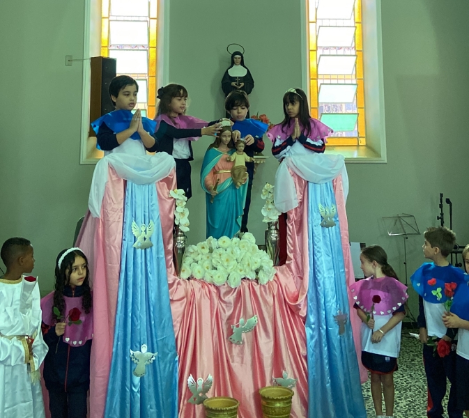 Assim como ocorreu nos outros dias, os estudantes participaram de uma leitura sobre a vida de Maria e, ao final da cerimônia, realizaram a tradicional coroação de Nossa Senhora.
