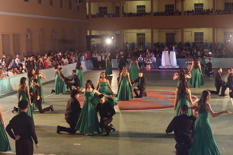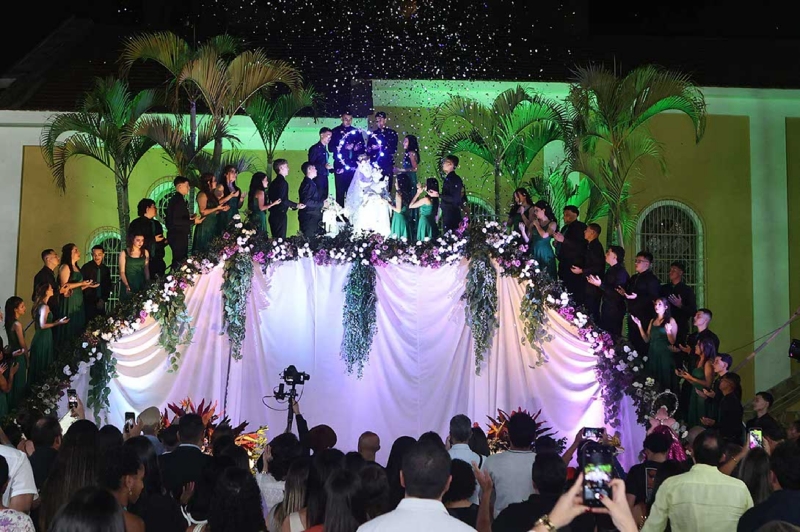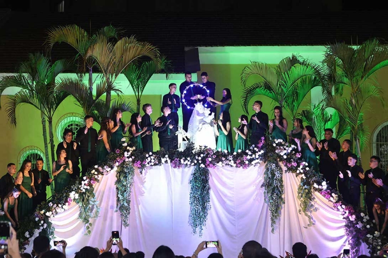 A coroação dos alunos do 3º ano do Ensino Médio foi o momento mais esperado e aguardado da noite. Conduzidos até o altar pelos pais e/ou familiares, os alunos vivenciaram um instante de profunda emoção e espiritualidade, simbolizando a passagem para uma nova fase de suas vidas. Este ato final da festa reflete a tradição salesiana de preparar os jovens para os desafios futuros com fé e valores sólidos.
