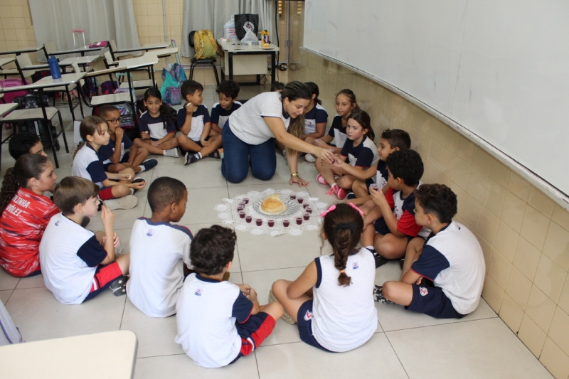 Já no período da tarde, os alunos do 4º ano encenaram a Santa Ceia, proporcionando um momento de oração, preces e reflexão, no qual pediram a renovação da fé, da esperança e do amor.