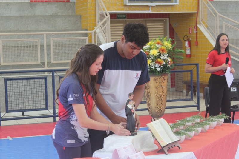 A celebração contou ainda com a participação do Padre Francisco, que conduziu um momento de espiritualidade e bênção. A manhã também foi marcada por apresentações culturais que emocionaram o público. Alunos da Fundação Menino Jesus apresentaram uma peça teatral com música, enquanto a banda ExaltaENSA, formada por alunos e conduzida pelo professor Norando, trouxe ainda mais energia à celebração.