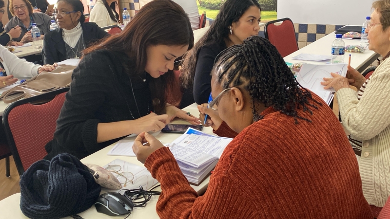 Colaboradores/as do próprio Retiro das Rosas tiveram a oportunidade de agregar conhecimentos em sua participação. “Foi uma experiência enriquecedora, pois contribuiu para o aprimoramento dos meus conhecimentos na área que atuo e de outros setores. Além disso, os momentos de integração e reflexão com os/as demais Colaboradores/as reforçaram ainda mais o comprometimento com os valores da Instituição”, disse Elaine Benitez, que atua no Departamento Pessoal do Retiro.