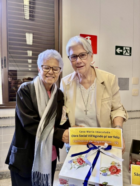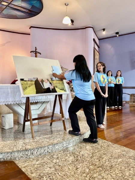 Na parte da tarde fomos presenteadas com o teatro “A ti as confio”, preparado pela Comunidade da Casa de Formação, Santa Teresa. O chamado: “A ti as Confio”, que mudou a vida de Madre Mazzarello, continua a ressoar ao longo da história das nossas comunidades e a dar a cada FMA, a cada comunidade educativa, respiro de universalidade. Se olhamos para as origens percebemos como a santidade vivida por Madre Mazzarello, pelas primeiras Irmãs, pelas jovens, é uma santidade de rosto missionário. Em seguida participamos de um divertido bingo dançante, animado pela Ir. Ana Maria Cordeiro. A festa foi encerrada com o momento orante: “Caminhos de Vida, Memórias do Coração”, conduzido pela Ir. Jane Maria da Silva. Celebramos este dia com espírito de gratidão, alegria e esperança.