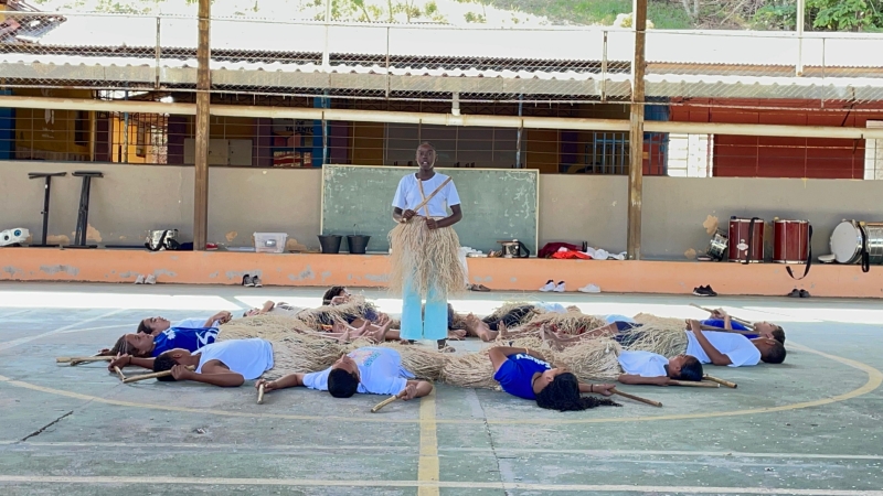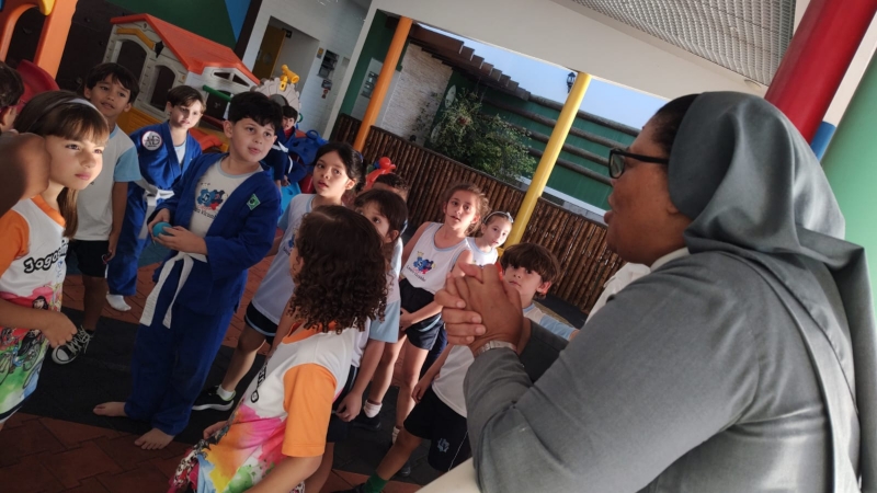 E nesta manhã, uma nova etapa de entusiasmo com os estudantes do ensino médio, para uma proposta de voluntariado VIDES: uma experiência encantadora, entre música, sorrisos e talentos artísticos que falam de esperança.