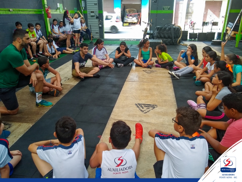 Na ocasião, os alunos foram convidados a visitarem o box de crossfit NO2 Crossaction e ficaram muito animados. Eles participarem de uma aula e vivenciarem a prática do esporte. Foi um momento muito divertido!