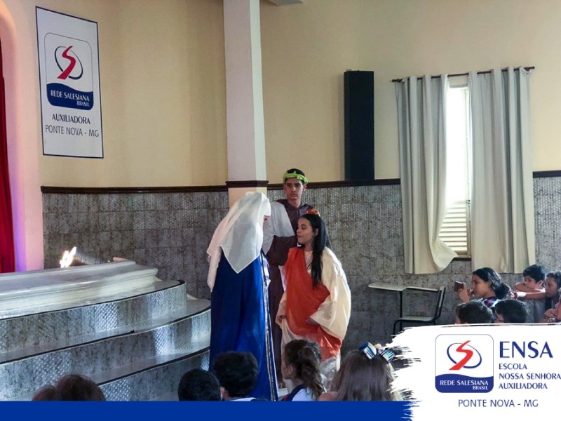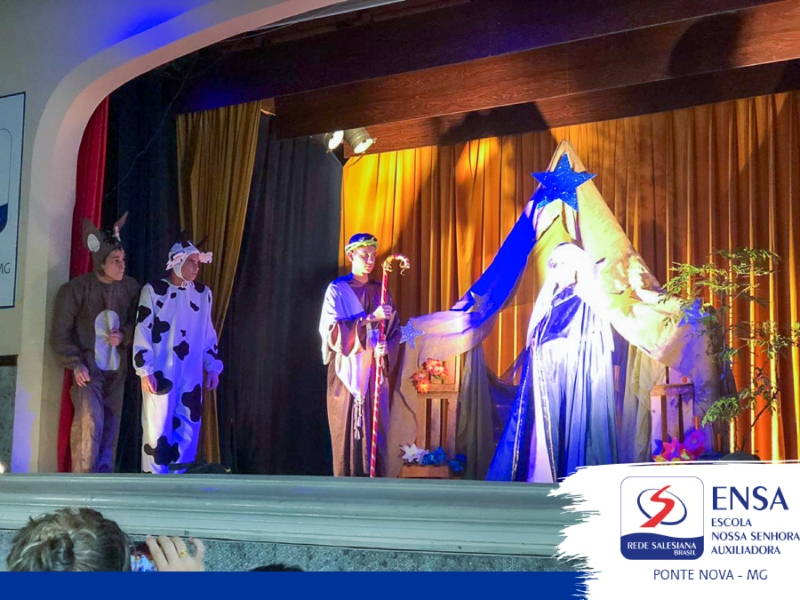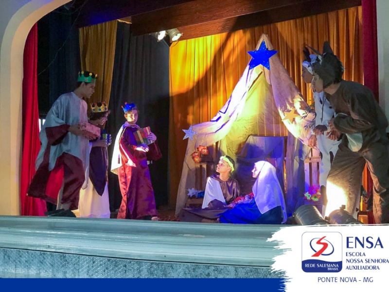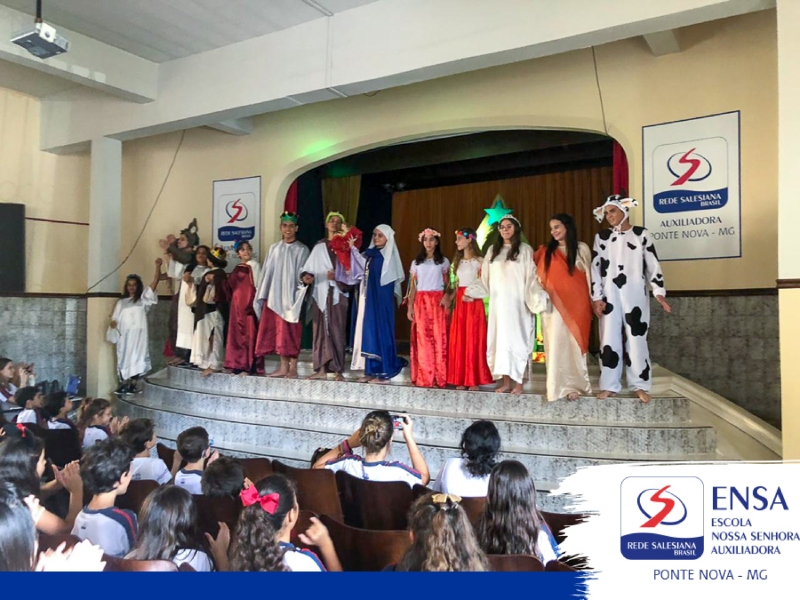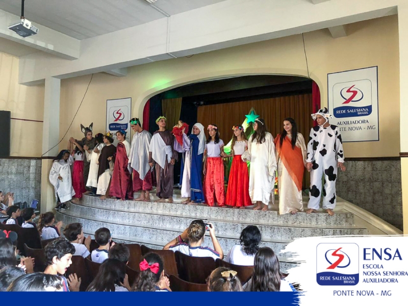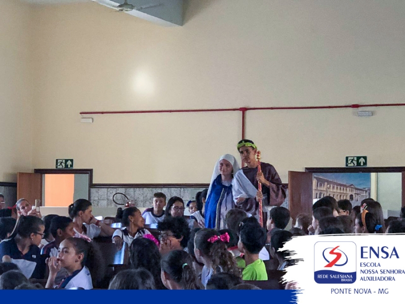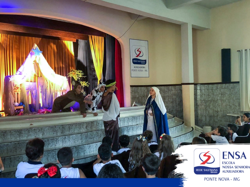 Já embalados pela magia do Natal, alunos da Ensa assistiram, em 06/12, a uma peça teatral apresentada por jovens da Articulação da Juventude Salesiana (AJS).