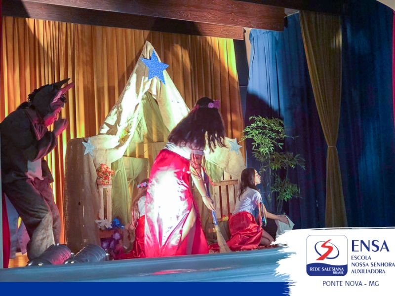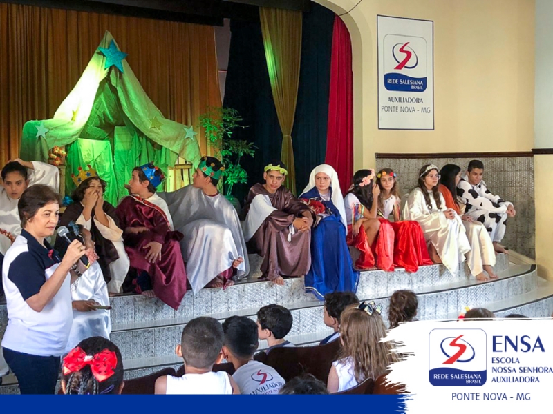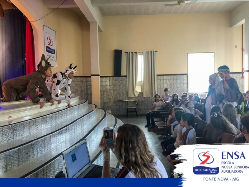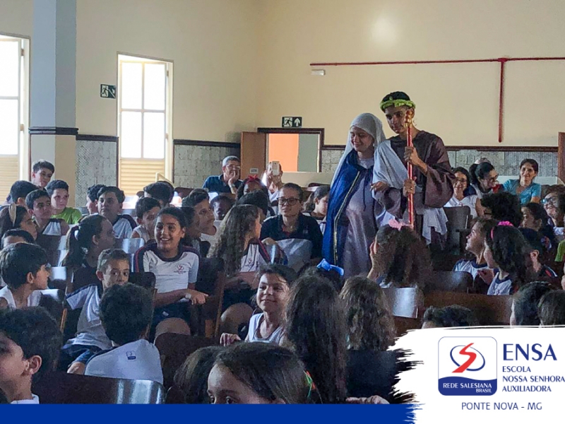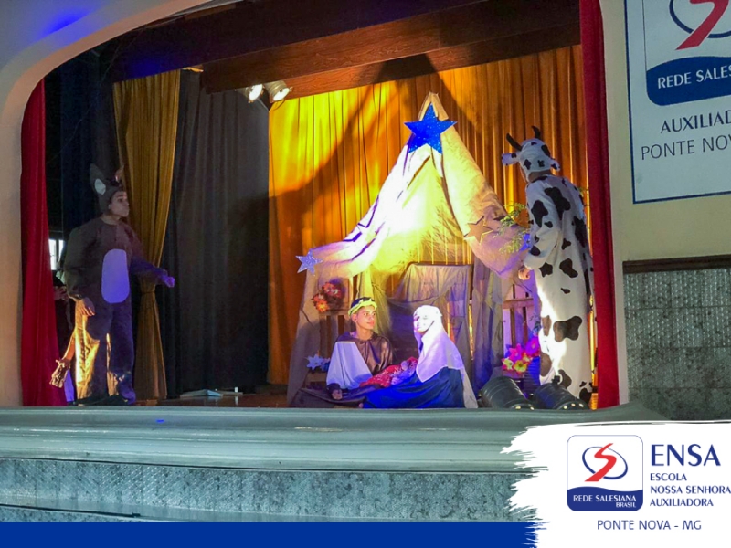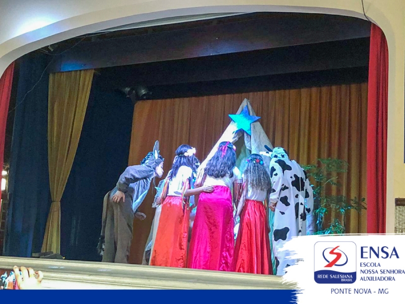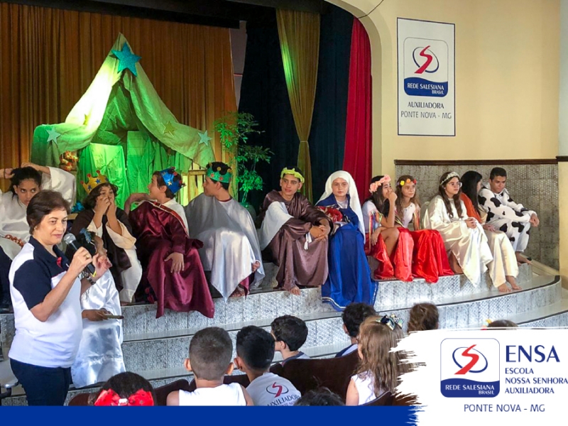 Já embalados pela magia do Natal, alunos da Ensa assistiram, em 06/12, a uma peça teatral apresentada por jovens da Articulação da Juventude Salesiana (AJS).