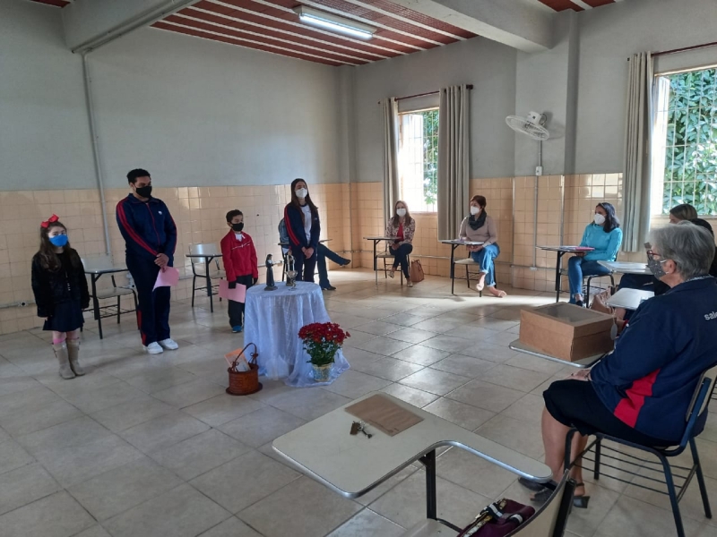A Diretora Institucional da escola, Irmã Áurea Martins, compartilhou um pouco sobre uma reflexão ministrada pela Inspetora sobre um trecho do evangelho, as Bodas de Caná. Nela, a Irmã fez uma releitura com os professores e colaboradores incentivando-os a pensar o que seria a felicidade na vida de cada um e para a comunidade em si.