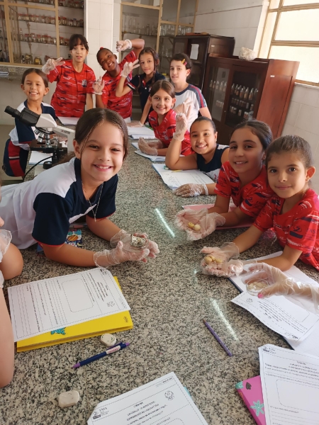 Na última segunda-feira (13/05), os alunos dos 4º anos participaram de uma divertida e educativa aula de ciências no laboratório. Sob a orientação das professoras Larissa Zupa e Wilza, os estudantes tiveram a oportunidade de explorar o fascinante Reino dos Fungos como verdadeiros cientistas.