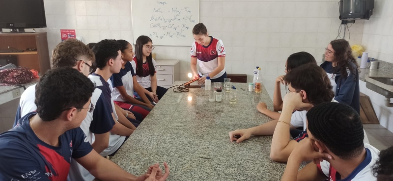 Os alunos do Ensino Médio da ENSA participaram de uma atividade prática no laboratório da escola, onde realizaram testes de condutibilidade elétrica de diversas soluções. O experimento, conduzido pela professora Fernanda Moraes, teve como objetivo classificar as soluções em eletrolíticas e não eletrolíticas, além de verificar a ocorrência de ionização ou dissociação dos solutos testados.