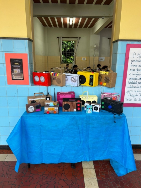 Como parte do aprendizado, os estudantes foram desafiados a criarem seus próprios rádios utilizando materiais recicláveis. Além disso, cada grupo apresentou uma notícia, curiosidade ou história para a turma, exercitando a criatividade e a expressão oral.