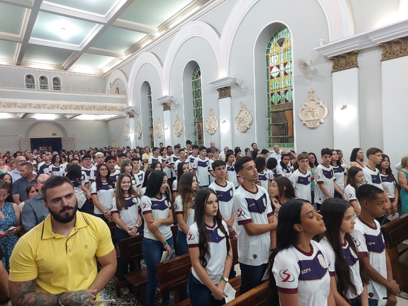 Em 5/12, a ENSA realizou a Missa em Ação de Graças para os alunos do 9º ano do Ensino Fundamental – Anos Finais. A celebração foi um marco importante para encerrar essa etapa da vida escolar dos estudantes.