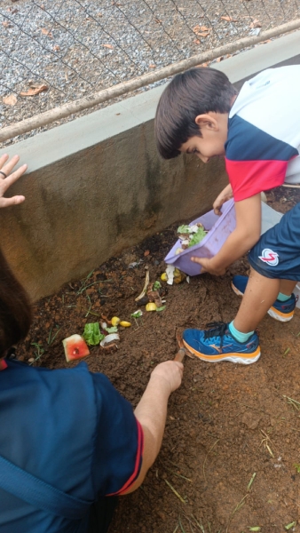 Os alunos do 4º ano tiveram uma aula diferente e interativa ao estudarem sobre os seres decompositores em um ambiente ao ar livre. Para tornar a experiência ainda mais prática, cada estudante trouxe materiais orgânicos, permitindo a observação direta da ação desses organismos essenciais para a ciclagem de nutrientes na natureza.
