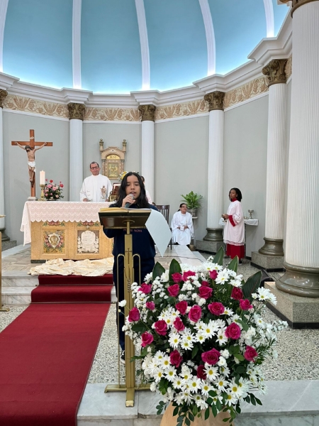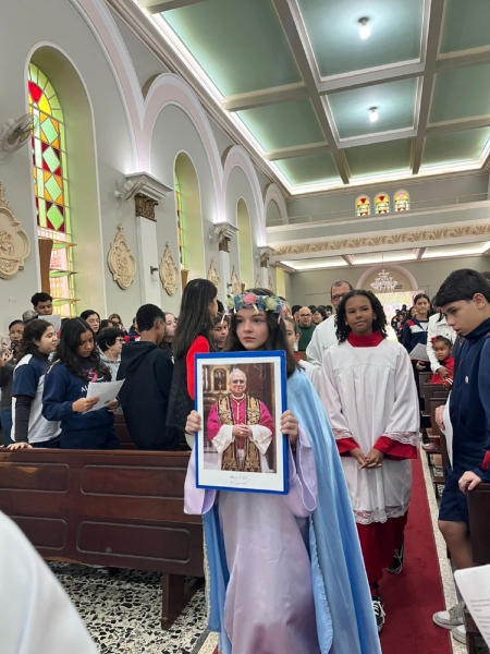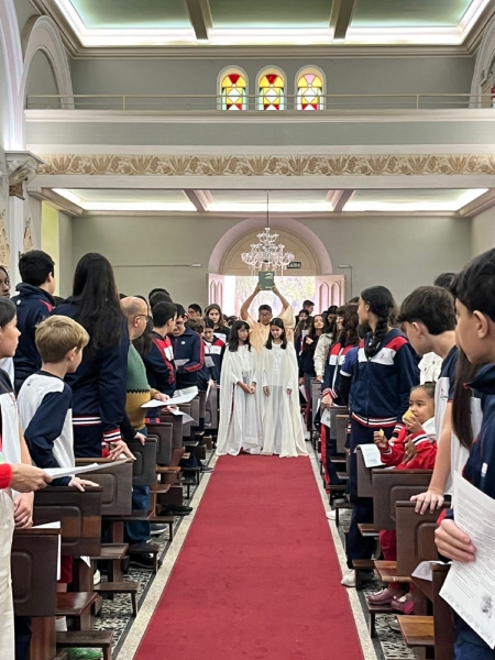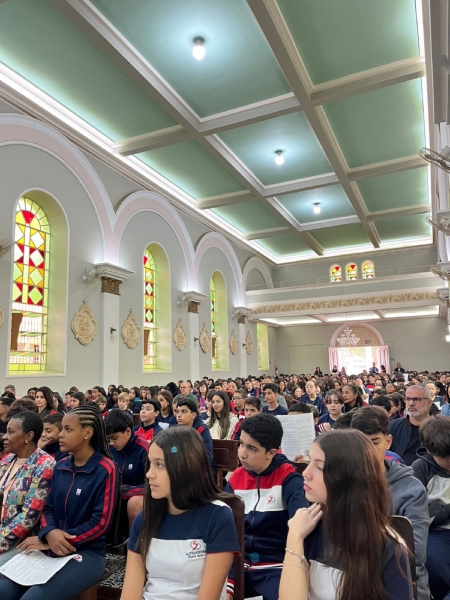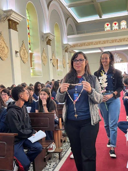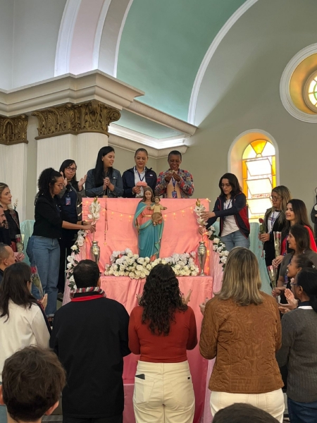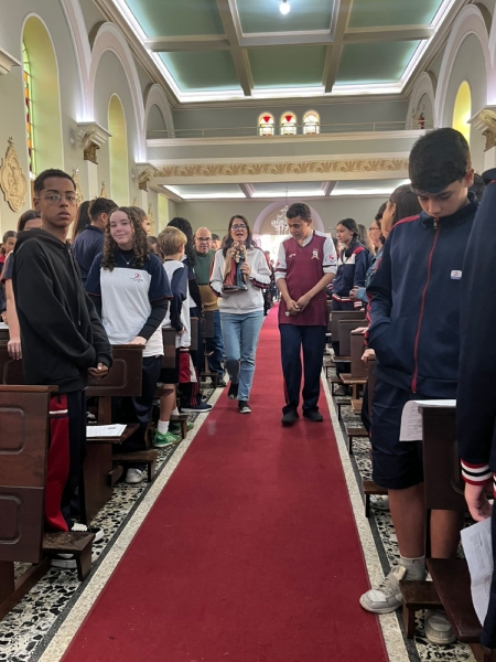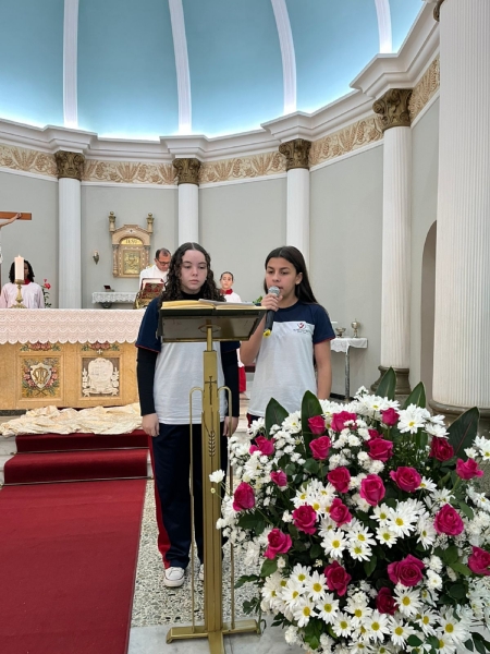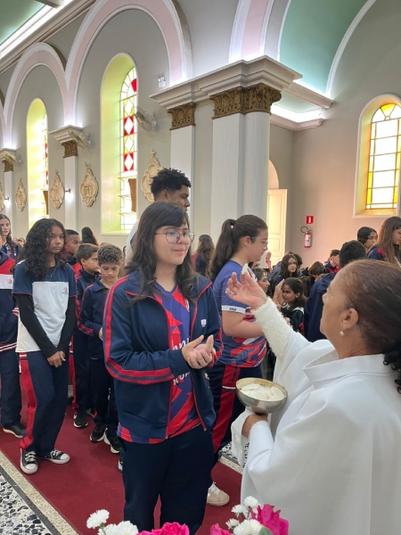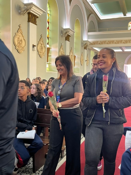 A missa fez parte da programação especial do mês mariano, tempo em que a comunidade escolar vivencia intensidade a presença de Maria nas atividades escolares. Durante a celebração, os colaboradores da escola participaram da coroação de Nossa Senhora, momento marcado por profunda emoção e gratidão.