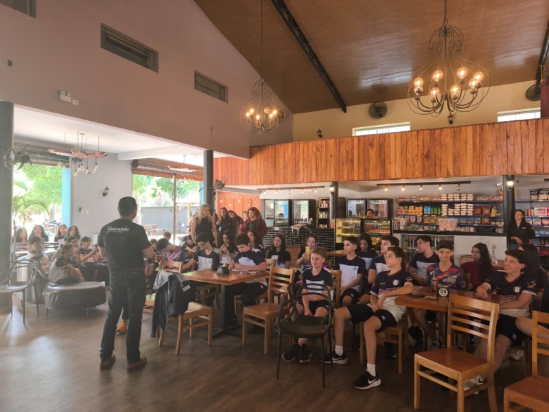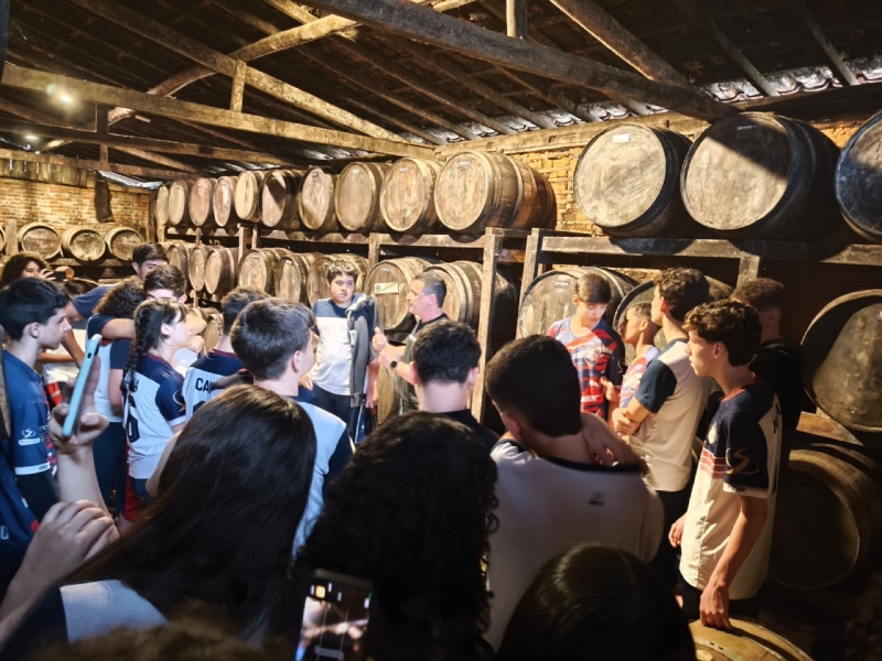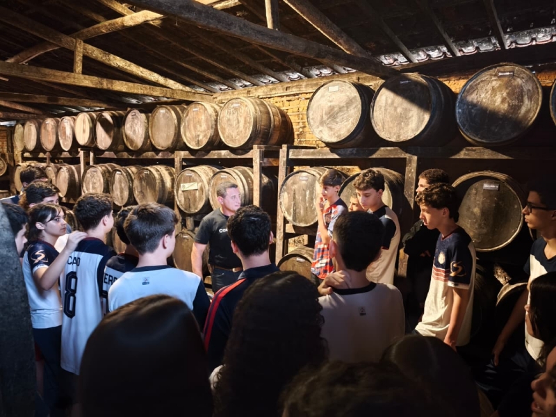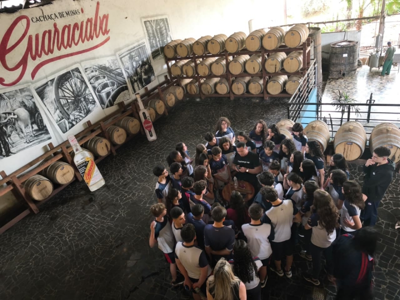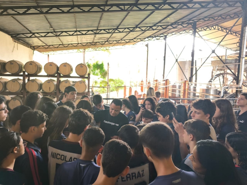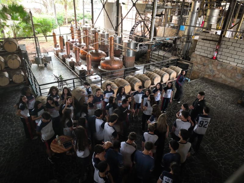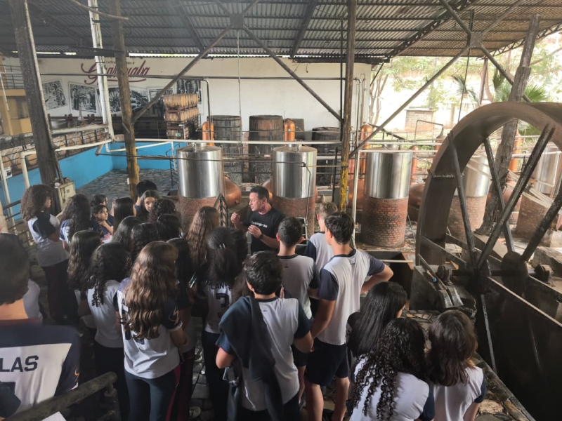 Como parte das ações do projeto FECULT, os alunos do 9º ano da Escola Nossa Senhora Auxiliadora participaram de uma visita técnica à Cachaça Guaraciaba.