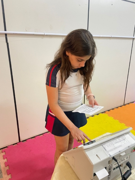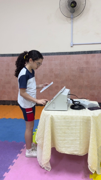 Para consolidar o aprendizado, a turma participou de uma simulação de votação com candidatos fictícios, aplicando na prática o que aprenderam em sala. O exercício contou com o uso da urna eletrônica, proporcionando aos alunos a oportunidade de conhecer de perto seu funcionamento e vivenciar o processo eleitoral de forma concreta e divertida.