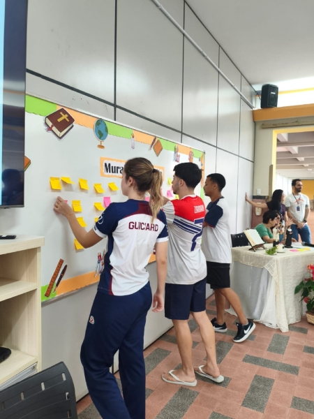Durante a celebração, cada estudante recebeu um kit especialcontendoágua, biscoitos, uma canetae uma medalha de Nossa Senhora Auxiliadora, abençoada para acompanhá-los no dia da prova. A caneta, símbolo do esforço e da caminhada de cada aluno, foi utilizada pela primeira vez para eles se identificarem enquanto pessoa nesse processo. Depois, eles preencheram o Mural de Propósitos, onde registraram seus sonhos e objetivos para o futuro.