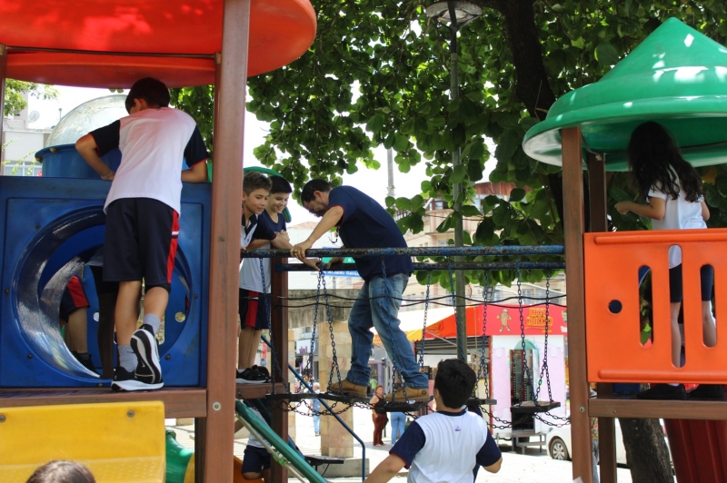 A aula aconteceu na Praça de Palmeiras e na Matriz São Pedro, locais importantes da cidade onde os alunos puderam caminhar pelo espaço, observar seus elementos e refletir sobre as transformações ocorridas ao longo do tempo. Durante o percurso, os estudantes foram convidados a pensar sobre como esses lugares eram no passado e como se apresentam atualmente.