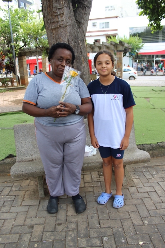 O momento também foi marcado por um gesto de empatia e carinho com a comunidade. Durante a atividade, os alunos ofereceram uma rosa às pessoas que estavam na praça, desejando que o dia de cada uma fosse abençoado e feliz. O gesto também foi uma homenagem ao Dia da Mulher, celebrado neste período, levando uma mensagem de reconhecimento e carinho às mulheres da comunidade.