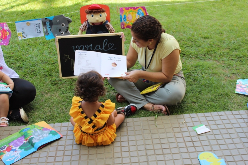 Caracterizadas como diferentes personagens, elas mergulharam no universo da fantasia durante a contação de histórias, demonstrando alegria, curiosidade e muita atenção a cada detalhe.