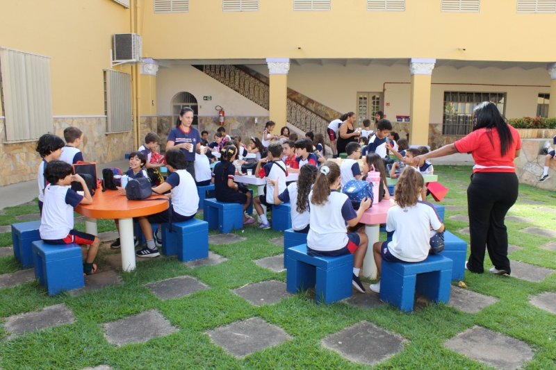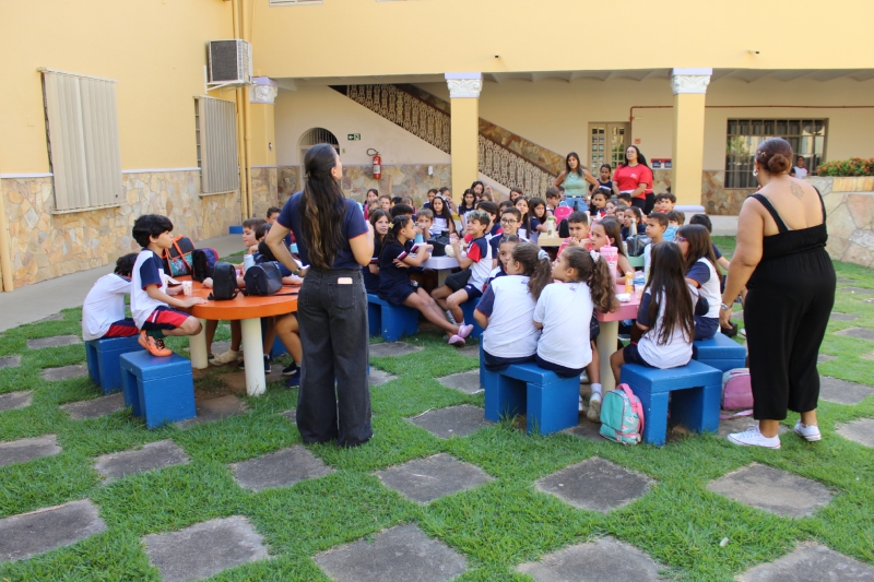 Como parte da vivência, foi realizada a socialização da pipoca, elemento escolhido também por seu significado cultural e linguístico. Os alunos conheceram a origem da palavra “pipoca”, que vem de uma expressão indígena que remete à ideia de “pele que estoura”, além de outras palavras do cotidiano com a mesma origem, como “abacaxi”, “tatu” e “mandioca”.