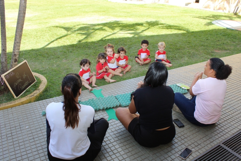 A vivência começou com a musicalização, por meio da cantiga que dá nome à atividade. Esse momento favoreceu o desenvolvimento da linguagem, do ritmo e da participação coletiva, incentivando as crianças a se expressarem e interagirem com os colegas.