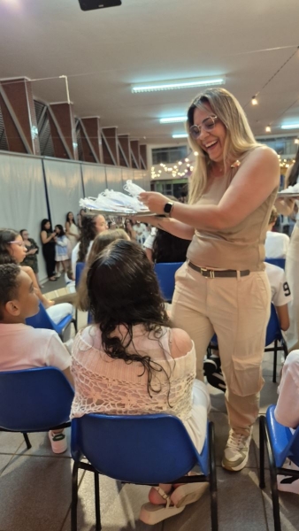 Famílias e educadores celebraram a chegada dos estudantes ao Ensino Fundamental II em uma cerimônia que destacou não apenas a mudança de segmento, mas também o crescimento, as conquistas e a luz que cada criança carrega.