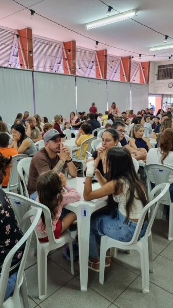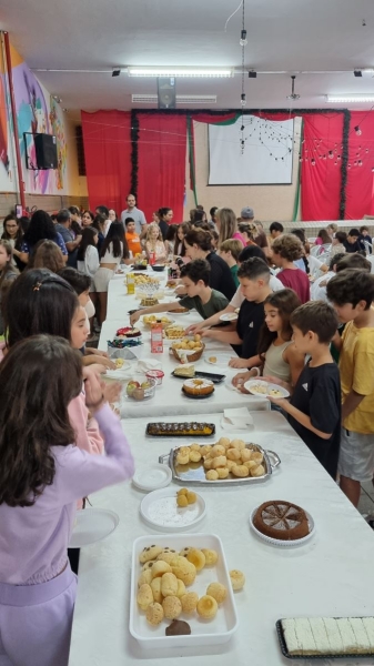 Para completar essa experiência tão especial, após a celebração os alunos participaram da aguardada Noite do Pijama, um momento de convivência, alegria e integração entre os colegas. E, na manhã seguinte, as famílias se reuniram na escola para um café da manhã afetuoso, finalizando a passagem de ciclo com presença, acolhimento e muita alegria compartilhada.