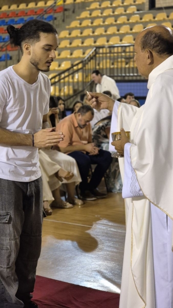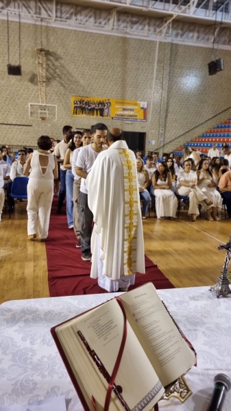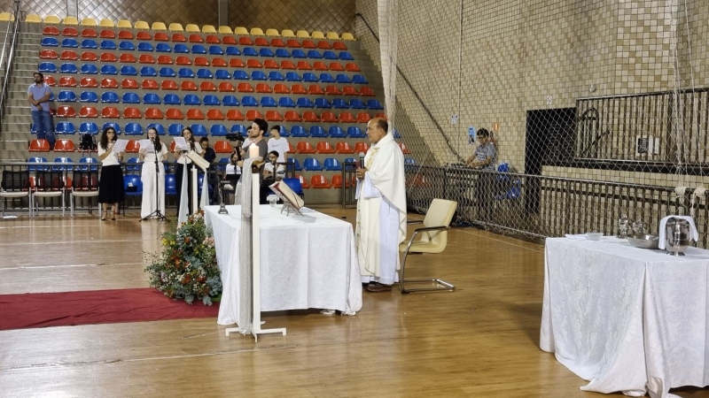 Presidida pelo Pe. Anchieta, a Celebração Eucarística contou com a participação ativa dos formandos, que colaboraram nas leituras e no momento do ofertório, tornando a celebração ainda mais significativa.