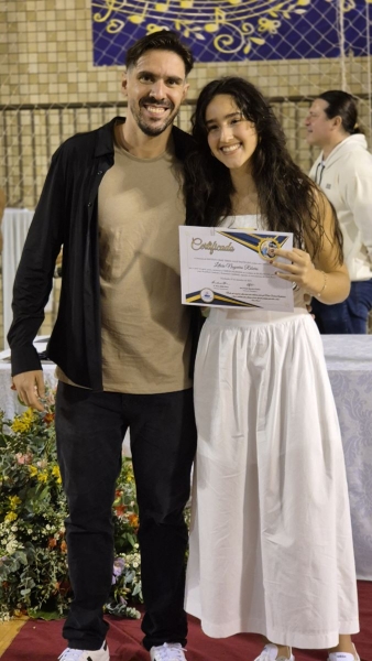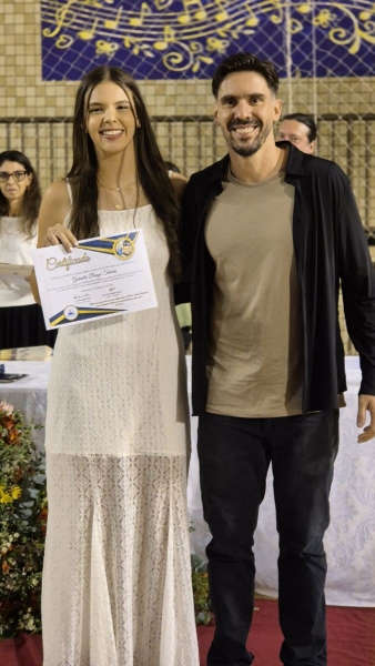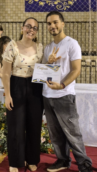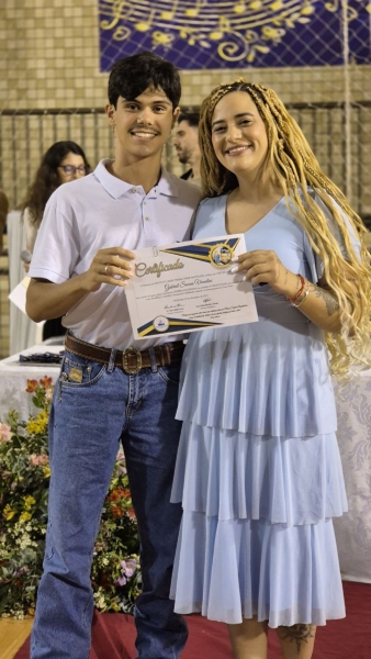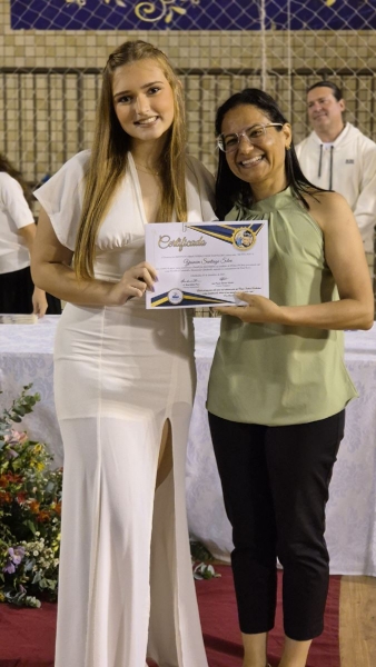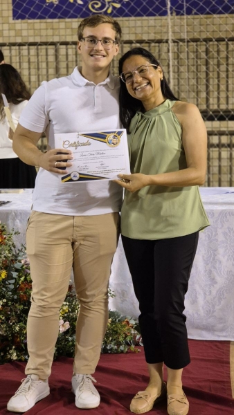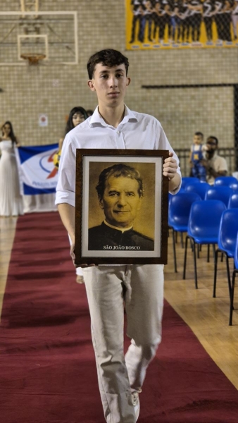 Em seguida, iniciou-se a entrega do certificado de ex-aluno salesiano, um gesto carregado de significado, que expressa o vínculo construído ao longo da caminhada educativa e pastoral. Mais do que marcar o encerramento de uma etapa da vida escolar, o momento reafirma a pertença dos estudantes à Família Salesiana, fruto da educação recebida e dos valores cultivados ao longo dos anos. O momento foi acompanhado pelo Hino da Rede Salesiana de Escolas, convidando os presentes a seguirem com ainda mais entusiasmo diante da vida e dos novos desafios que se apresentam.