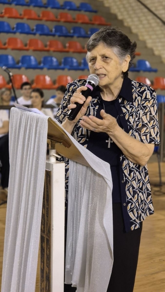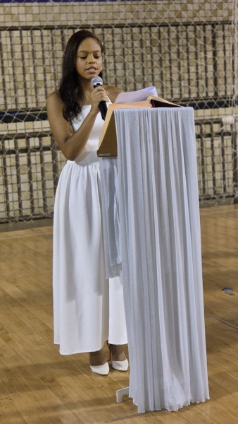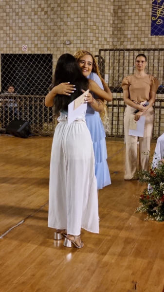 Após a Celebração Eucarística, iniciou-se o momento de homenagens, repleto de palavras de gratidão a Deus, aos pais, à turma, aos educadores, à escola e aos funcionários, reconhecendo o apoio e a dedicação que fizeram parte dessa jornada. Na sequência, a Coordenadora Sílvia Ferreira, a Diretora Pedagógica Ana Paula Gerino e a Diretora Institucional Irmã Rosa Idalia Pesca expressaram ternas palavras aos formandos, refletindo sobre a fé, a trajetória dos estudantes salesianos e reforçando a missão cumprida de ajudá-los a se tornarem “bons cristãos e honestos cidadãos”.