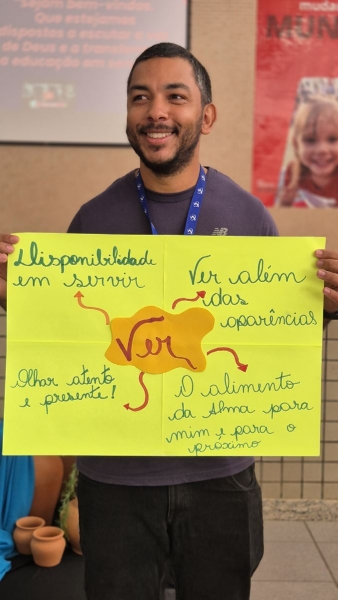 Na sequência, o salesiano de Dom Bosco, Padre Leandro Brum, da Inspetoria Salesiana São Pio X (BPA), conduziu a reflexão com o tema “Sistema Preventivo: vivenciando o nosso oratório”. A partir dessa abordagem, os educadores foram convidados a olhar para as necessidades concretas de nossas crianças, adolescentes e jovens, refletindo sobre como o currículo e as práticas pedagógicas podem responder, de forma integrada, a essas realidades.