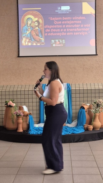 Encerrando a Jornada, a diretora geral do Instituto Teresa Valsé, Irmã Rosa Idalia Pesca, partilhou uma reflexão à luz da Campanha da Fraternidade, que neste ano traz como tema “Fraternidade e Moradia” e lema “Ele veio morar entre nós” (Jo 1,14). Em sua mensagem, destacou que a vivência da fraternidade começa no interior de cada pessoa, convidando todos a cuidarem de sua morada interna para, assim, acolherem com respeito e sensibilidade as diferentes moradas presentes na comunidade educativa.