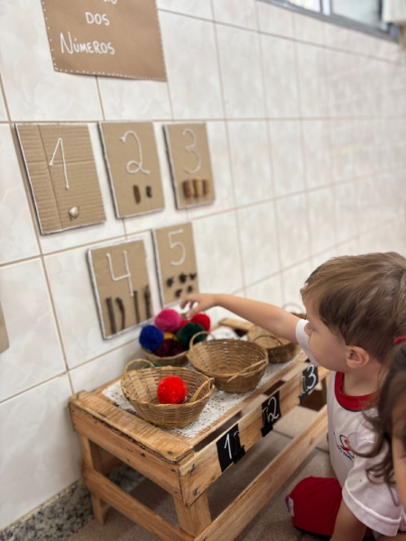 Além disso, a organização do espaço, com um cantinho de exploração que contenha numerais visíveis e materiais acessíveis, favorece a autonomia e o protagonismo infantil.