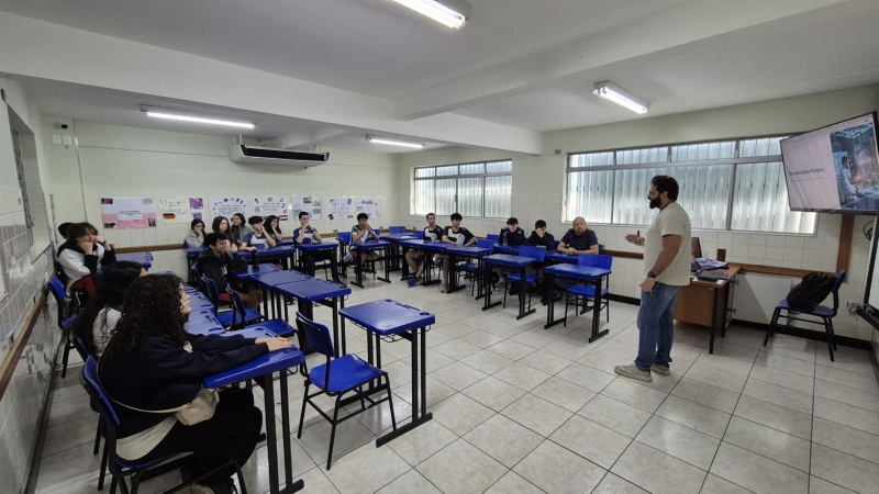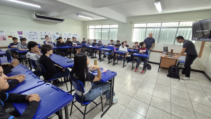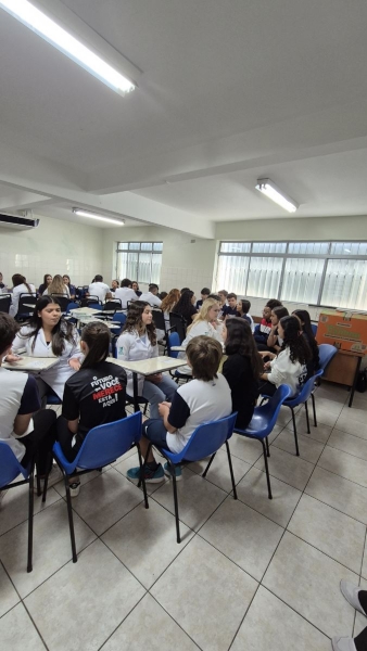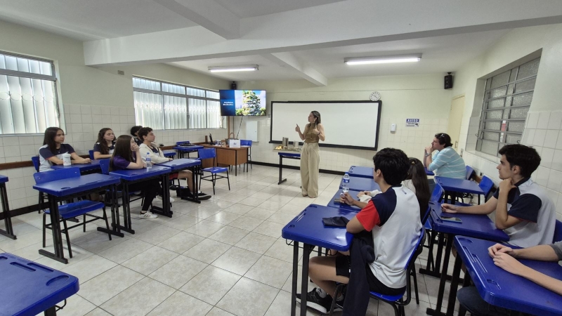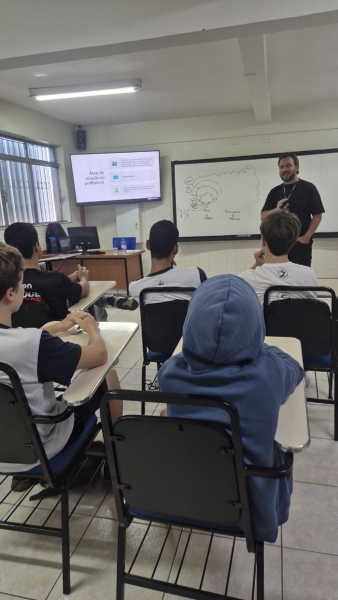 Das 7h às 12h, a escola se transformou em um verdadeiro espaço de conexão com o universo acadêmico. Profissionais e representantes de diversas áreas estiveram presentes para compartilhar experiências, trajetórias e informações sobre formação e mercado de trabalho.
