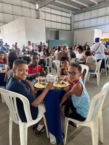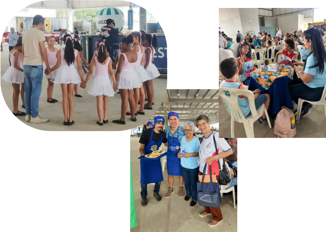 Um dos pontos altos do evento é o tradicional Almoço Beneficente de Domingo. Neste ano, 40 crianças e adolescentes atendidos pela Obra Social Villagindo foram convidados a participar desse momento especial por meio do Rotary Club de Cachoeiro de Itapemirim. Para os participantes, foi um domingo diferente: um almoço fora de casa com os amigos e a oportunidade de conhecer e aproveitar as atividades da feira.