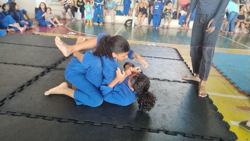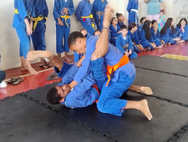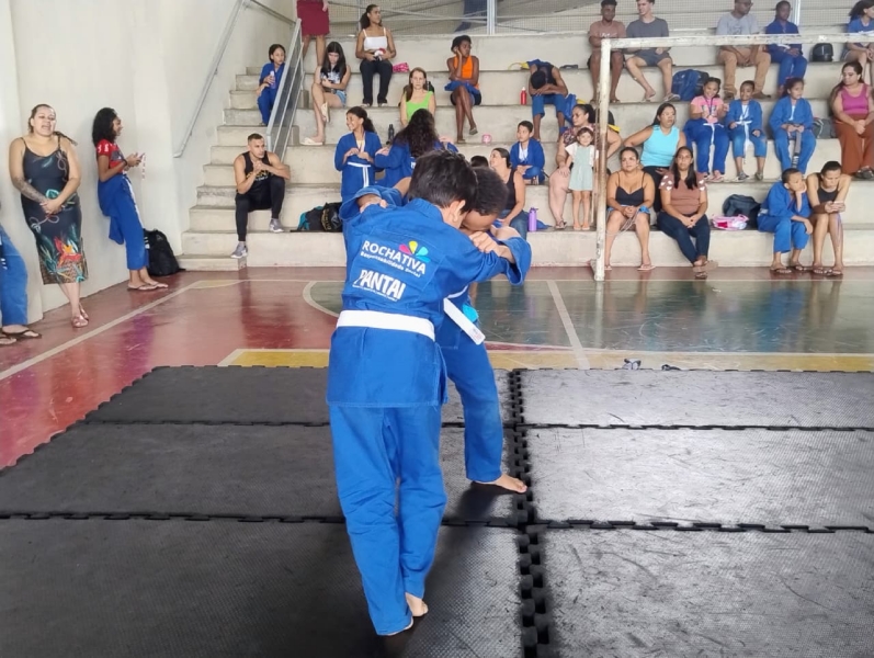 No último sábado, 6 de dezembro, a quadra da obra social Vill’agindo recebeu o Torneio Interno de Jiu-Jitsu, valorizando o desempenho, a participação e a dedicação das crianças e adolescentes atendidos na modalidade, realizada em parceria com a Rochativa.