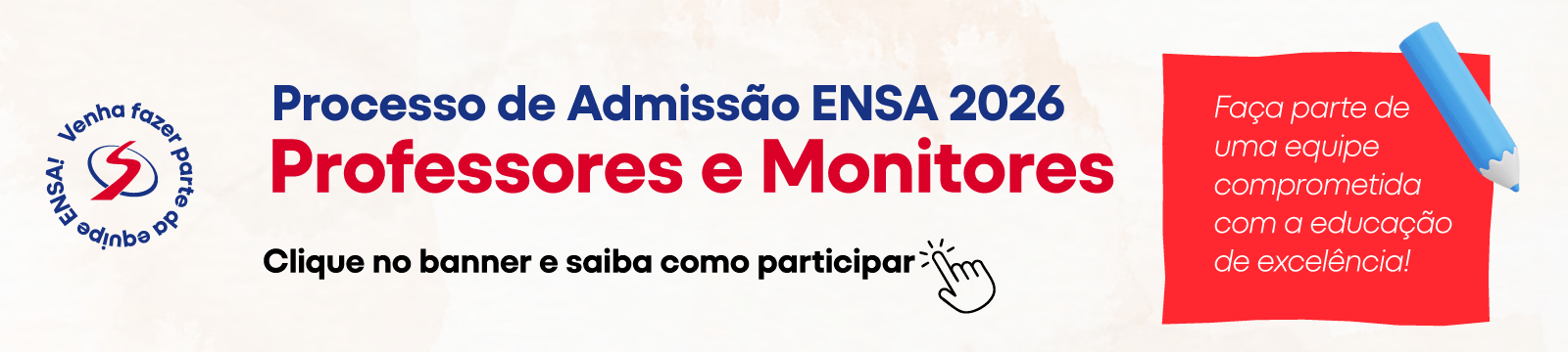 EDITAL DE BOLSA 2026 Carta das Diretoras EDITAL DE MATRÍCULAS 2026 CALENDÁRIO ESCOLAR ENSA Listas de Materiais INSTRUÇÕES PARA COMPRA DO MATERIAL DIDÁTICO DE INGLÊS Guia de compra do material didático de Filosofia - EF Anos Finais