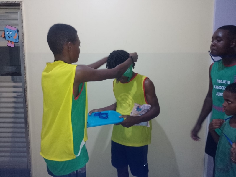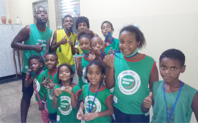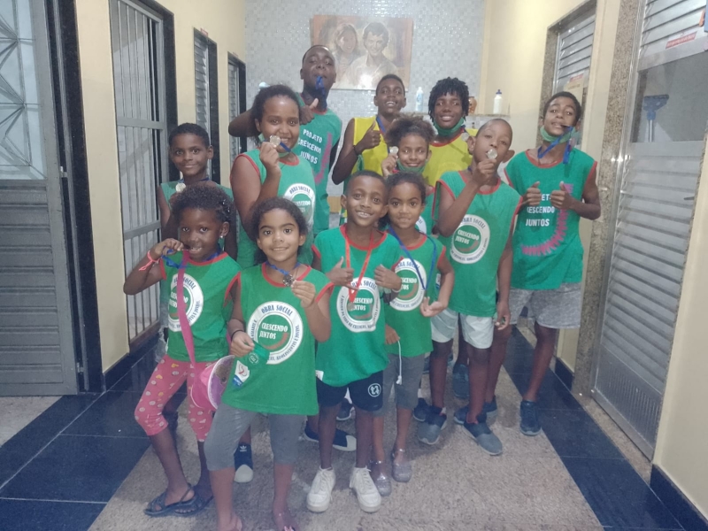 As medalhas foram entregues pela equipe de liderança jovem da instituição. Esse momento de premiação reforçou o protagonismo dos jovens na Obra Social Crescendo Juntos.
