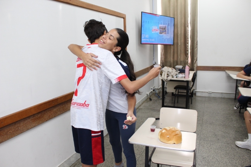 Já no período da tarde, os alunos do 4º ano encenaram a Santa Ceia, proporcionando um momento de oração, preces e reflexão, no qual pediram a renovação da fé, da esperança e do amor.