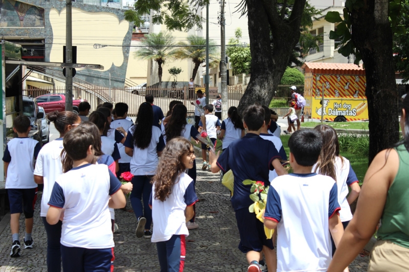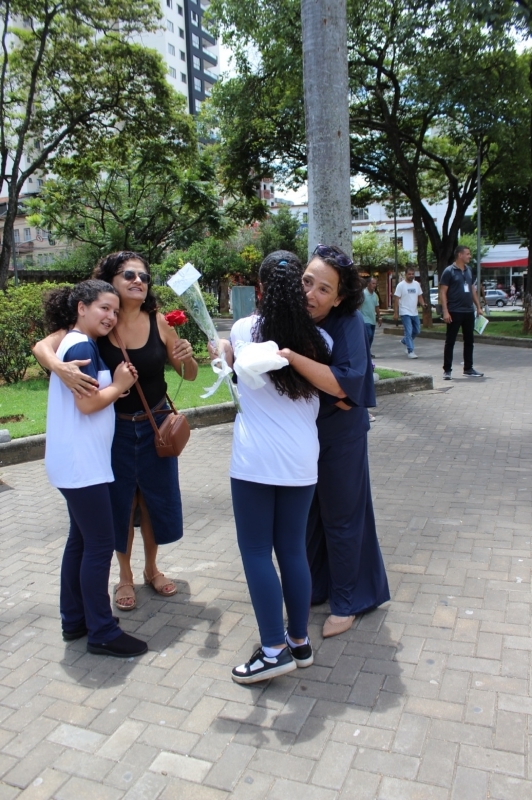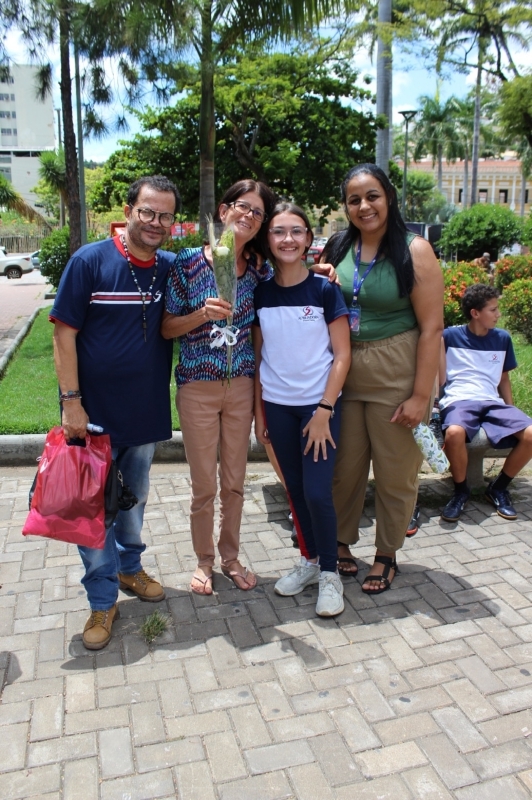 O momento também foi marcado por um gesto de empatia e carinho com a comunidade. Durante a atividade, os alunos ofereceram uma rosa às pessoas que estavam na praça, desejando que o dia de cada uma fosse abençoado e feliz. O gesto também foi uma homenagem ao Dia da Mulher, celebrado neste período, levando uma mensagem de reconhecimento e carinho às mulheres da comunidade.