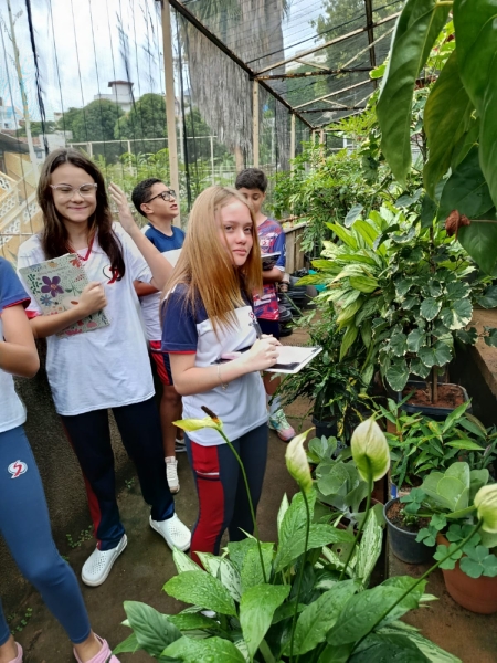 Durante a atividade, os estudantes puderam observar na prática as diferenças entre os principais grupos de plantas: briófitas, pteridófitas, gimnospermas e angiospermas. A aula permitiu identificar características e estruturas que compõem cada grupo, facilitando a compreensão do conteúdo estudado em sala.