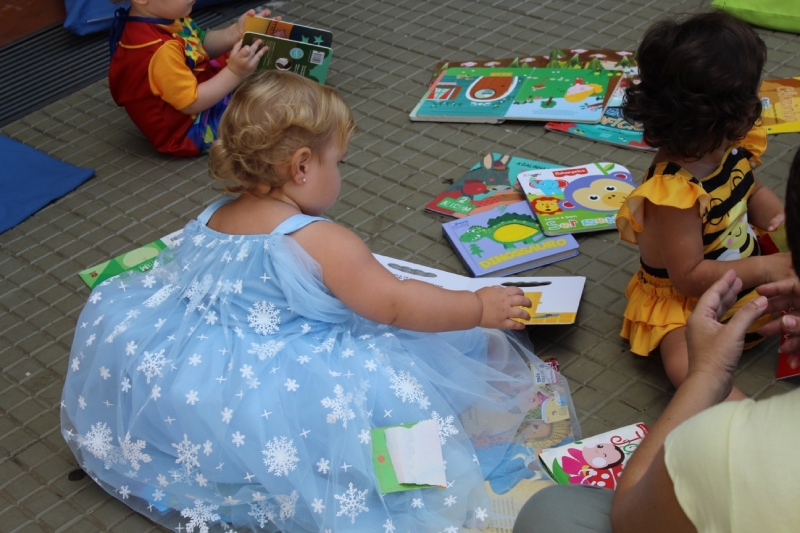 Caracterizadas como diferentes personagens, elas mergulharam no universo da fantasia durante a contação de histórias, demonstrando alegria, curiosidade e muita atenção a cada detalhe.