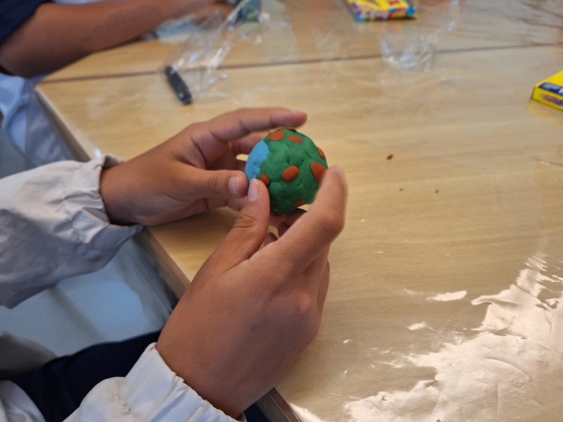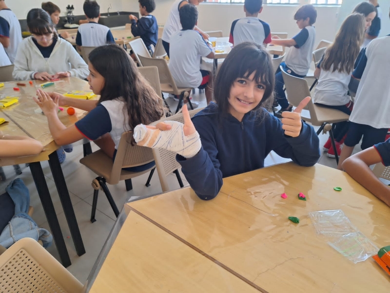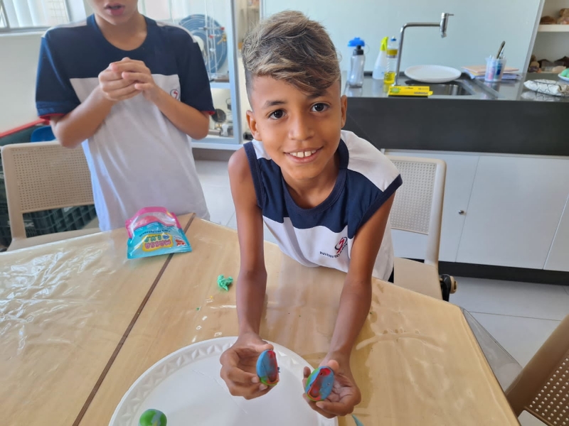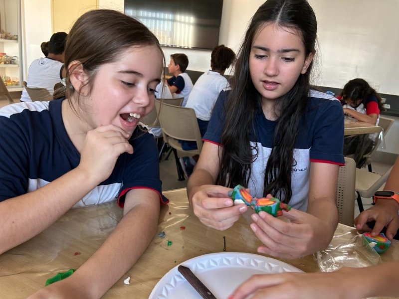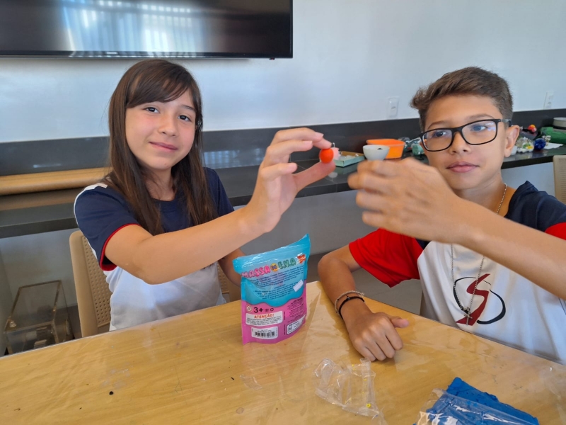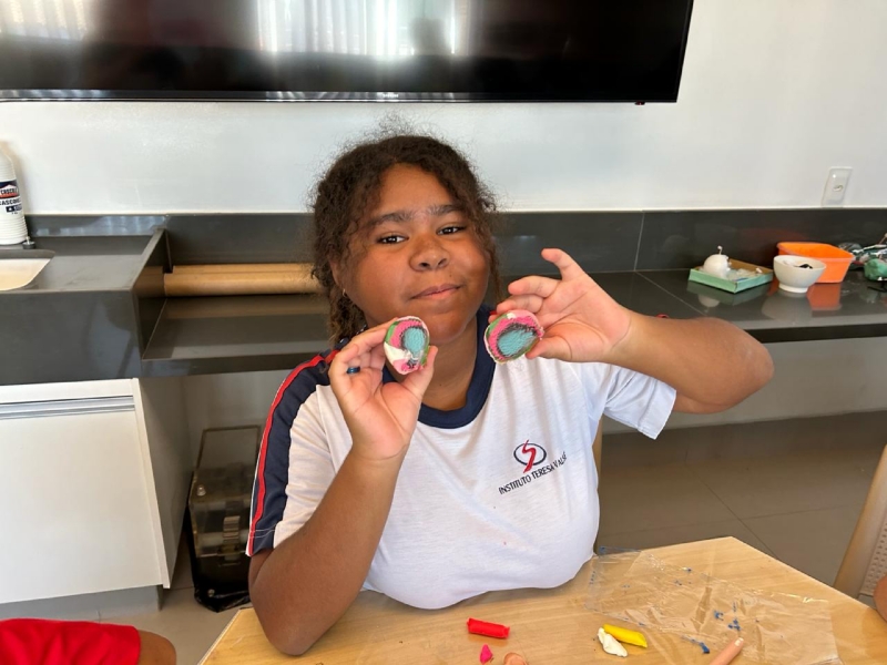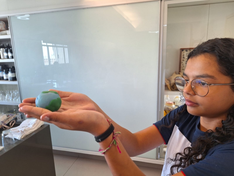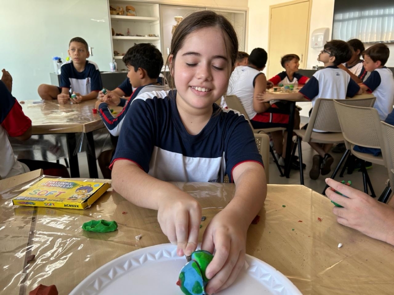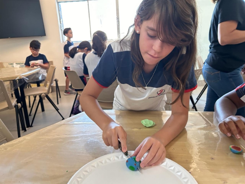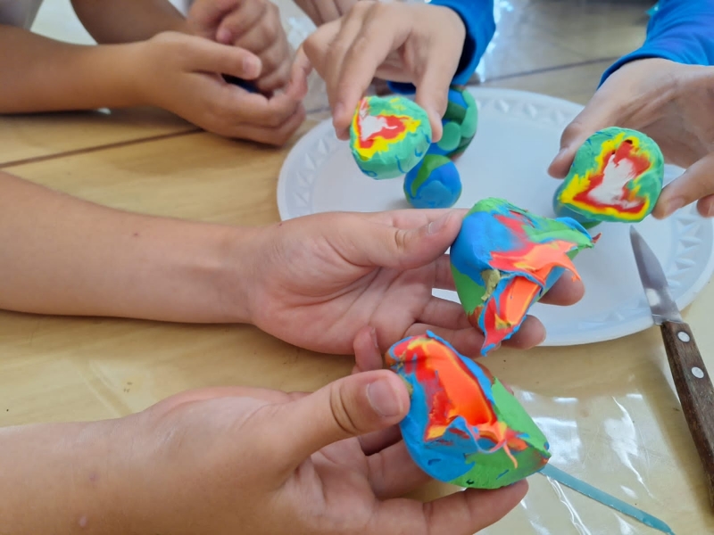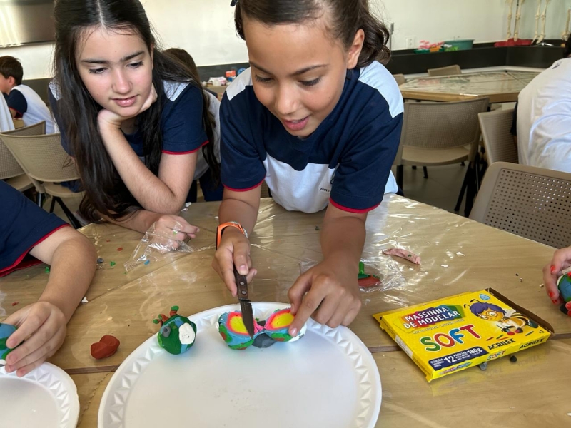 Nas aulas de Ciências, os estudantes do 6º ano do Ensino Fundamental colocaram a mão na massa, explorando o laboratório de Ciências e utilizando massinha de modelar colorida para moldar e construir as camadas internas do planeta Terra: núcleos interno e externo, manto e crosta terrestre.
