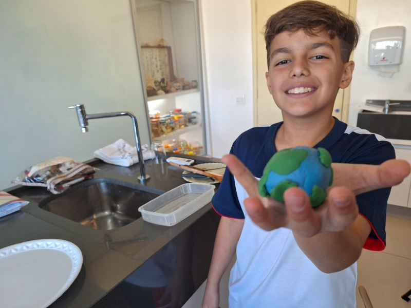 Além de divertir e trabalhar a motricidade fina das mãos, os alunos aprenderam sobre as camadas internas do planeta. Toda atividade foi desenvolvida sob a orientação da professora Miriam. Houve envolvimento e entusiasmo de todos os estudantes.