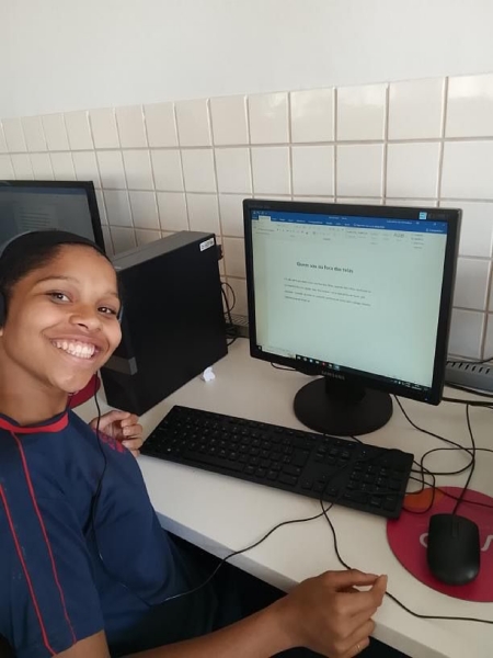 E no dia 29 de agosto, na oficina Enter@ção na era digital os educandos abordaram o tema “Autoconhecimento”, pois conhecer a si mesmo é fundamental em qualquer idade, mas se torna ainda mais crucial para crianças e adolescentes em um mundo dominado por telas. A jornada do autoconhecimento os ajuda a entender suas emoções, talentos e o que os torna únicos, permitindo que construam uma identidade forte e autêntica, independente das personas ou interações digitais. Ao se perguntarem “*Quem sou eu fora das telas?*”, eles são incentivados a explorar o mundo real, cultivar hobbies, fortalecer amizades e descobrir o prazer de estar presente, equilibrando a vida online com a offline. Assim, o autoconhecimento se torna uma bússola que os guia para uma vida mais equilibrada e saudável, onde sua identidade real brilha mais do que qualquer filtro ou post nas redes sociais.