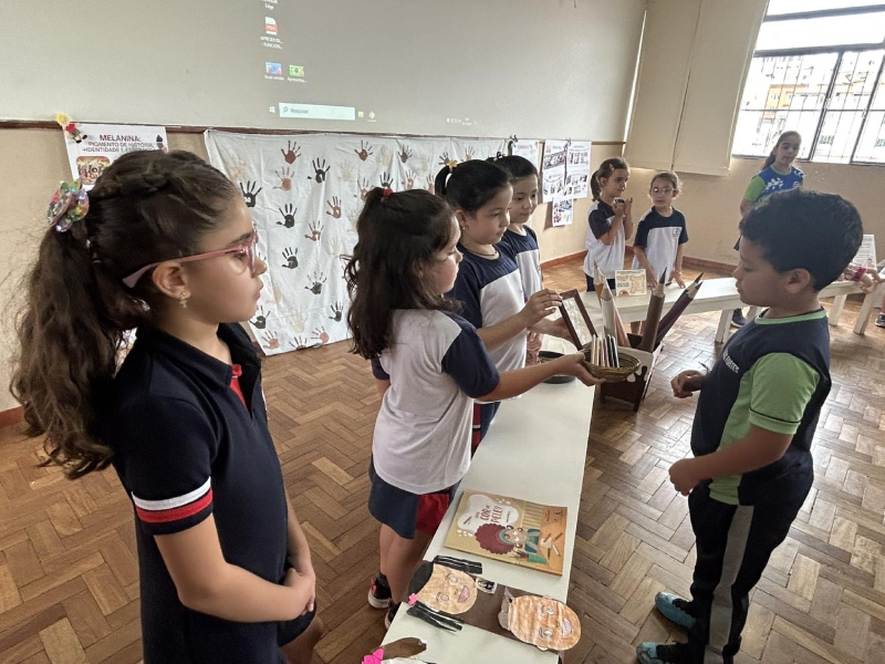 Na acolhida do dia 04 de novembro, recebemos com muita alegria as turmas do 1º ano das professoras Solange e Nayra. Elas desenvolveram um projeto incrível sobre a Melanina, e tiveram participação no Instituto Federal com o tema: “Melanina: pigmento de história, identidade e esperança.”